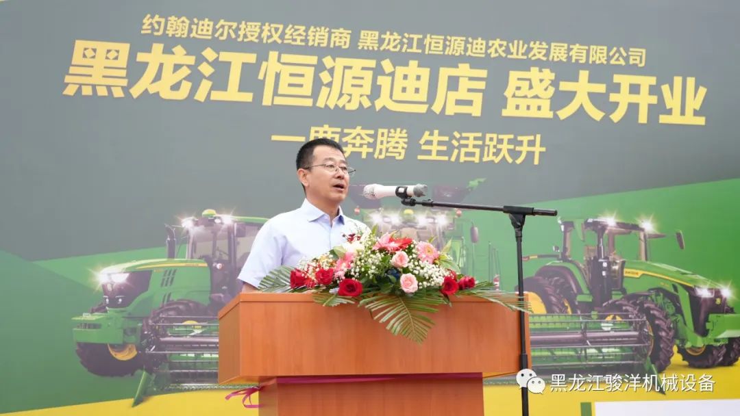 黑龍江恒源迪農(nóng)業(yè)發(fā)展有限公司總經(jīng)理杜立志發(fā)表了開場致辭(下圖)。他表示,作為迪爾授權(quán)經(jīng)銷商,恒源迪農(nóng)業(yè)將不負(fù)約翰迪爾公司和用戶朋友的信任與期待,砥礪前行、全心全力的將迪爾品牌的核心價(jià)值觀“誠實(shí)、優(yōu)質(zhì)、守信、創(chuàng)新”發(fā)揚(yáng)光大。公司有著完備的市場推廣、售后服務(wù)、配件供應(yīng)體系和經(jīng)驗(yàn),相信會(huì)給用戶帶來更好的產(chǎn)品使用體驗(yàn),讓用戶創(chuàng)造更大收益,為黑龍江現(xiàn)代農(nóng)業(yè)特別是農(nóng)機(jī)現(xiàn)代化的發(fā)展添磚加瓦。